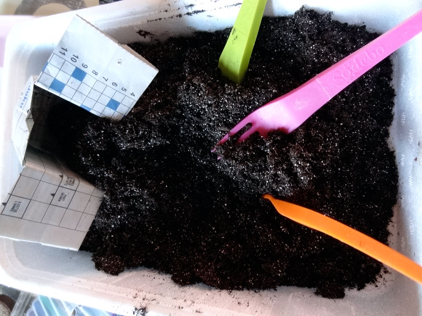 J’ai semé également du basilic, de la laitue, de la ciboule de Chine, des ancolies(graines ramassées dans le Morvan) et des roses trémières.