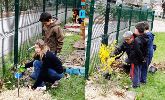 - un atelier jardinage, pendant lequel les derniers arbustes ont été planté(forsythias, eucalyptus)