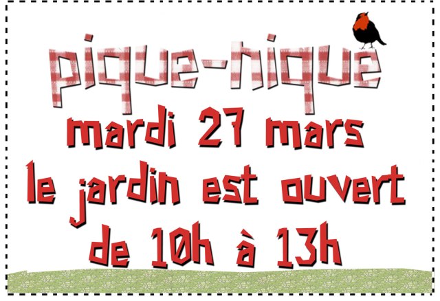 Venez nous retrouver mardi 27 mars au jardin pour discuter, semer, planter! Nous profitons des beaux jours pour vous proposer d’amener votre pique-nique et de venir déjeuner avec nous. L’après-midi, le jardin sera réservé pour des élèves du lycée Le Corbusier, avec qui nous construirons des cages à plantes grimpantes, dans le cadre de nos échanges avec le projet de la Semeuse aux Laboratoires d’Aubervilliers.