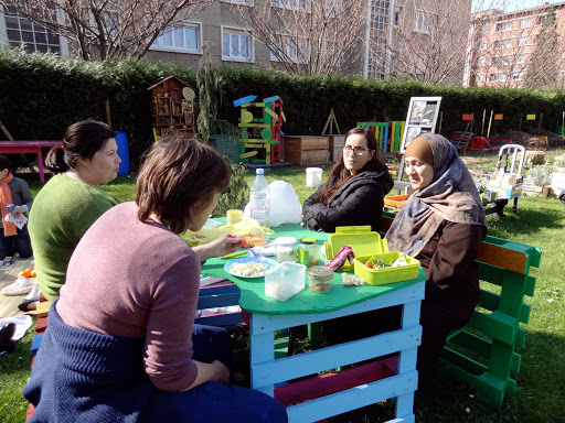 Pour notre 3ème séance de l’action Jardin d’échanges, une vingtaine de personnes ont répondu à notre proposition de pique-nique au jardin mardi 27 mars 2012. Nous avons pu tous passer un moment agréable au soleil puis nous avons commencé les plantations avec Mamadi, Lorenzo et Sekou qui sont venus nous rejoindre après. Ils ont planté dans notre lasagne et dans les bacs des salades, de la consoude, de la bourrache, de l’hysope et un plant de rhubarbe!