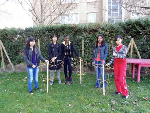 A 15h30, M.Portier et 5 élèves du lycée Le Corbusier sont venus construire au jardin des cages à plantes grimpantes en osier. Les 3 cages repartiront aux Laboratoires d’Aubervilliers pour le projet de la Semeuse.