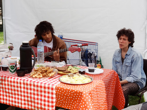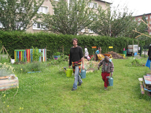 Le samedi précédent, nous avions eu plus de chance avec la météo. Notre journée portes ouvertes pendant la brocante de quartier a été un franc succès . Nous avions organisé plusieurs stands (repas bio, vente et troc de plantes, maquillage) et la compagnie Grain Magique était également de la partie pour une improvisation de danses. Nous avons également distribué les sachets de graines de Laissons pousser afin que les visiteurs puissent semer où bon leur semble en ville!Merci à nos bénévoles qui ont préparé des gâteaux, joué de la guitare, et participé aux activités de la journée.