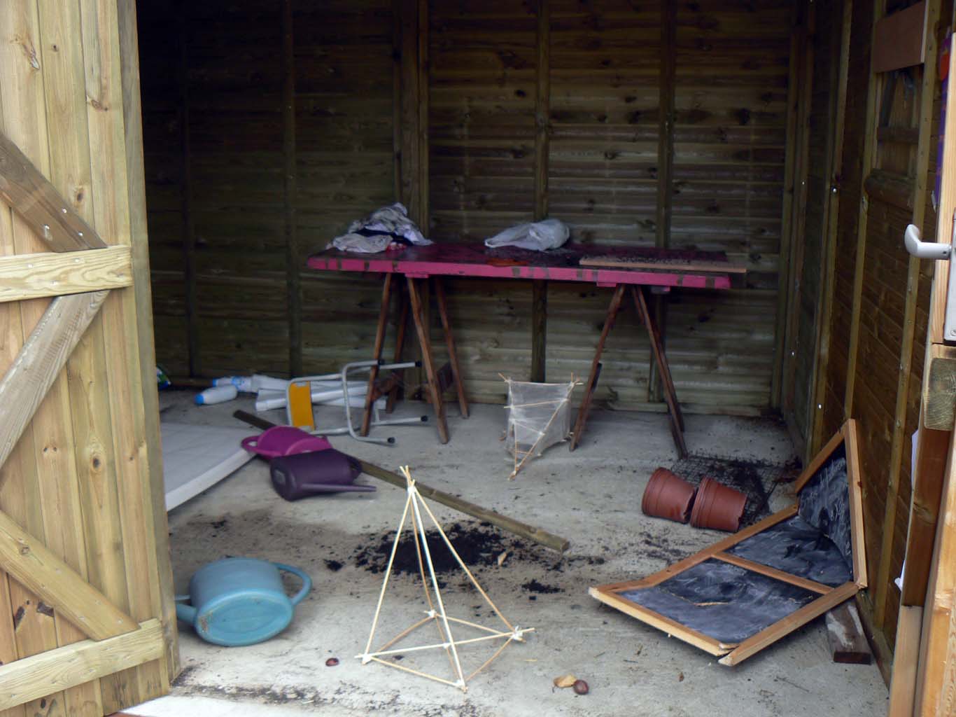 Mais la semaine dernière, le chalet et le jardin ont subi, à plusieurs reprises des dégradations importantes, casses des ouvertures (malgré les renforts mis après les premières visites), de la serrure, mais aussi dégradation et vol du peu de matériel stocké, table et chaises, terreau, tableau noir d’information….