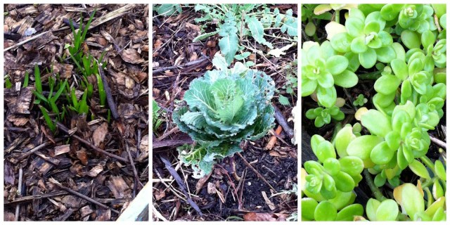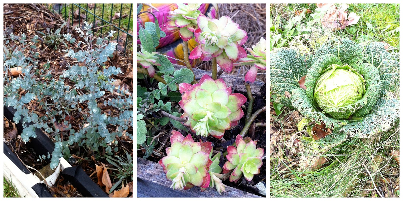 Les hémérocalles pointent le bout de leurs feuilles, les choux prolifèrent et les crassula envahissent le mobilier. Même l’eucalyptus a résisté aux intempéries!