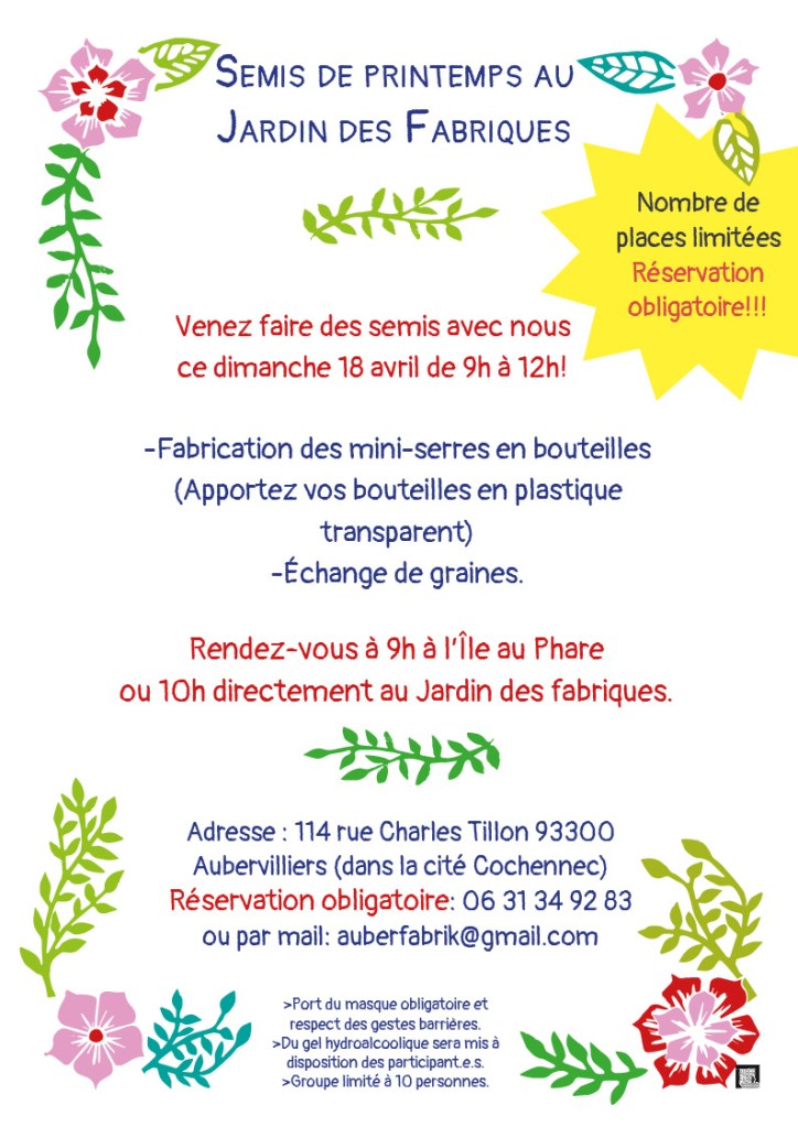 N’oubliez pas d’amener des bouteilles en plastique, minimum 1.5l, l’idéal étant 5litres. Sylvie et Lili vous y accueilleront pour fabriquer des mini serres et échanger des graines.