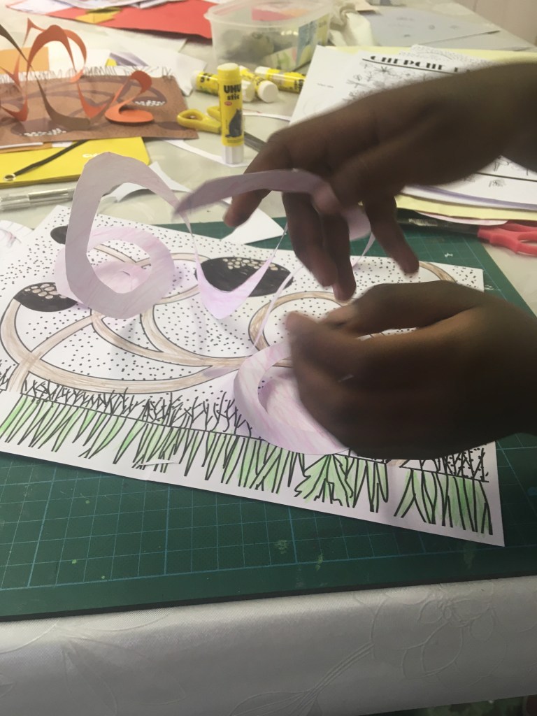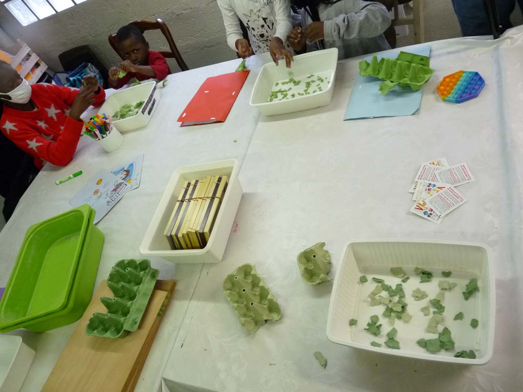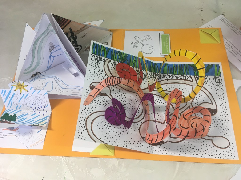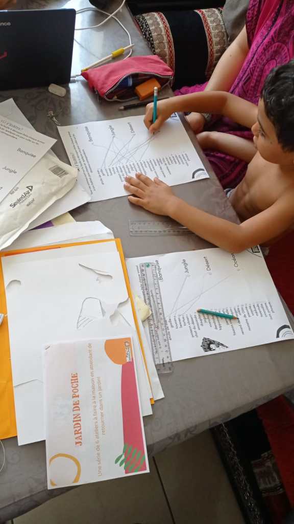Les kits ont été distribués à une vingtaine d’enfants de 6 à 12 ans par la poste ou en mains propres. Si la météo ne nous a pas permis d’activités au jardin, nous avons tout de même pu organiser 3 séances à l’île au phare afin de monter les dioramas et pop-ups. Nous avons également fabriqué des cartes à planter en papier recyclé qui ont fait les beaux jours de quelques balcons.