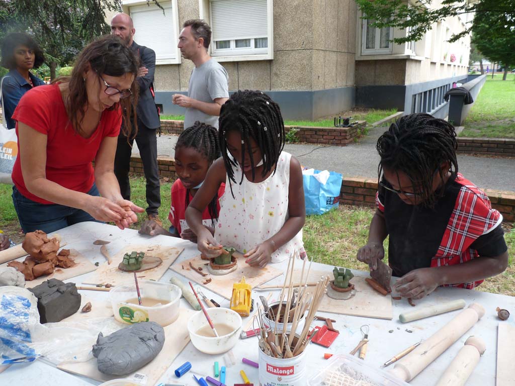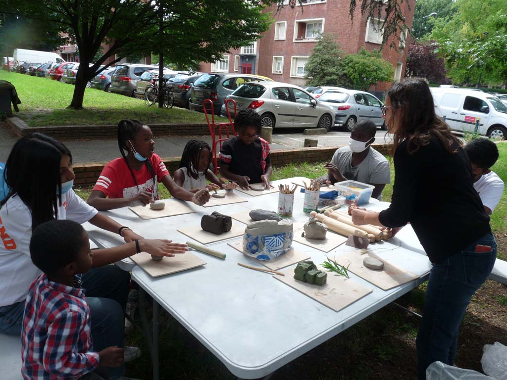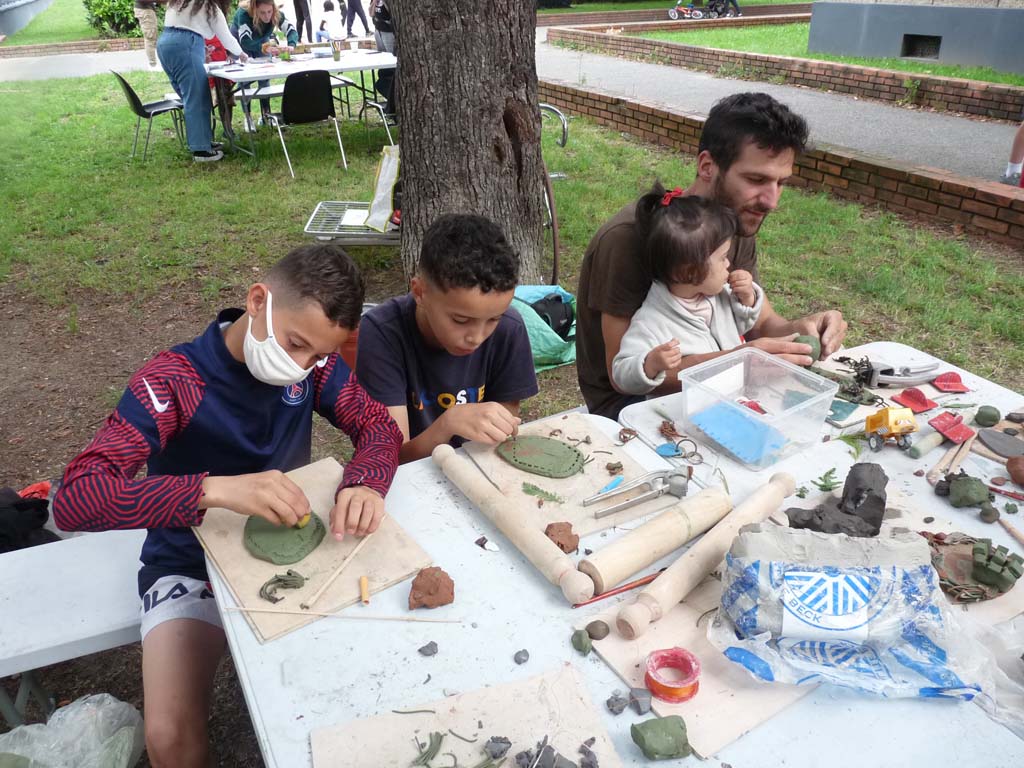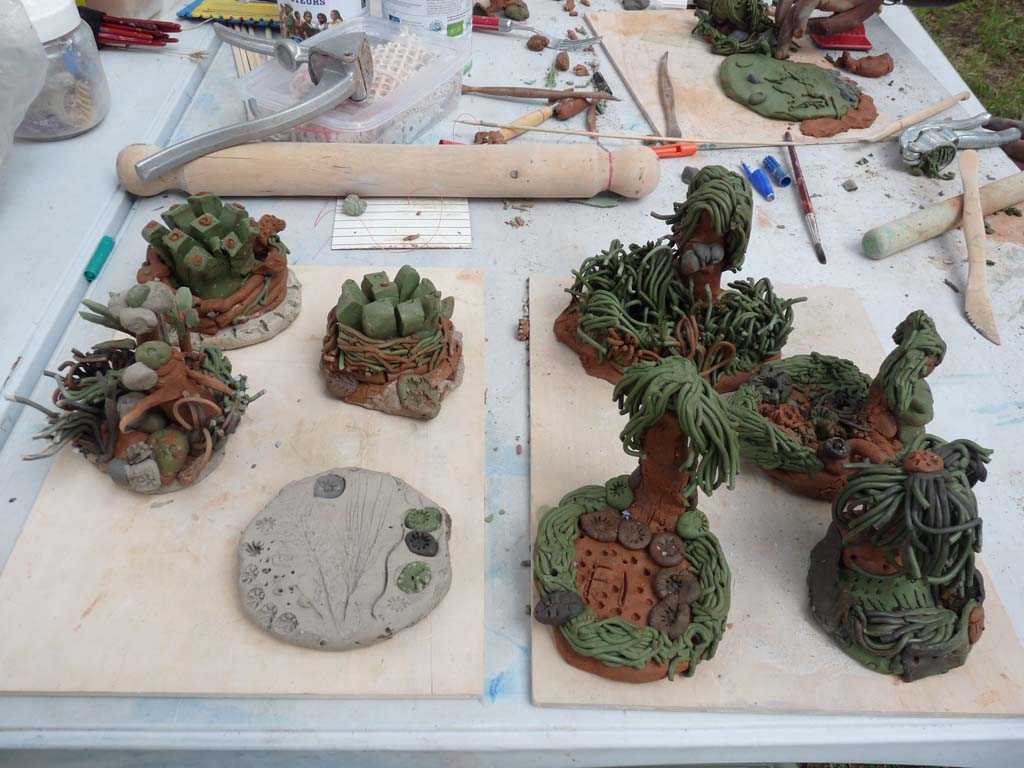 Anne Balthazard a ouvert le cycle avec un atelier de modelage en argile « Re-présenter les arbres ». Les enfants et adultes ont pu découvrir les différentes techniques de modelage avec de l’argile : tailler dans le bloc, travailler de colombins, réaliser l’assemblage… le tout avec beaucoup de créativité. Les sculptures insolites et merveilleuses, seront cuites à plus de 1000°C, on découvrira le résultat à l’automne.
