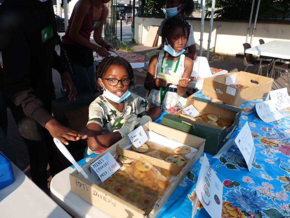 Le 21 juillet notre atelier L’Île au Phare s’est transformé en petite usine de cookies, colorés et délicieux, lors de l’atelier pâtisserie avec Sylvie Napolitano. La vente des cookies par les enfants lors du Repas de quartier a financé notre sortie au cinéma !