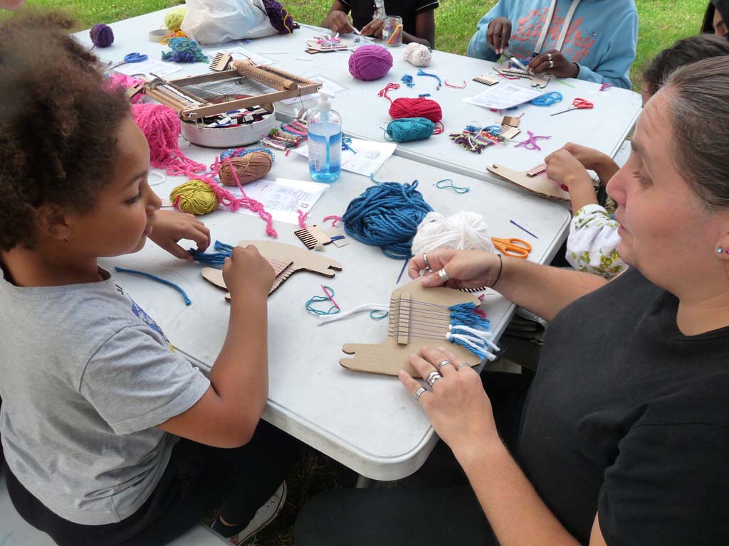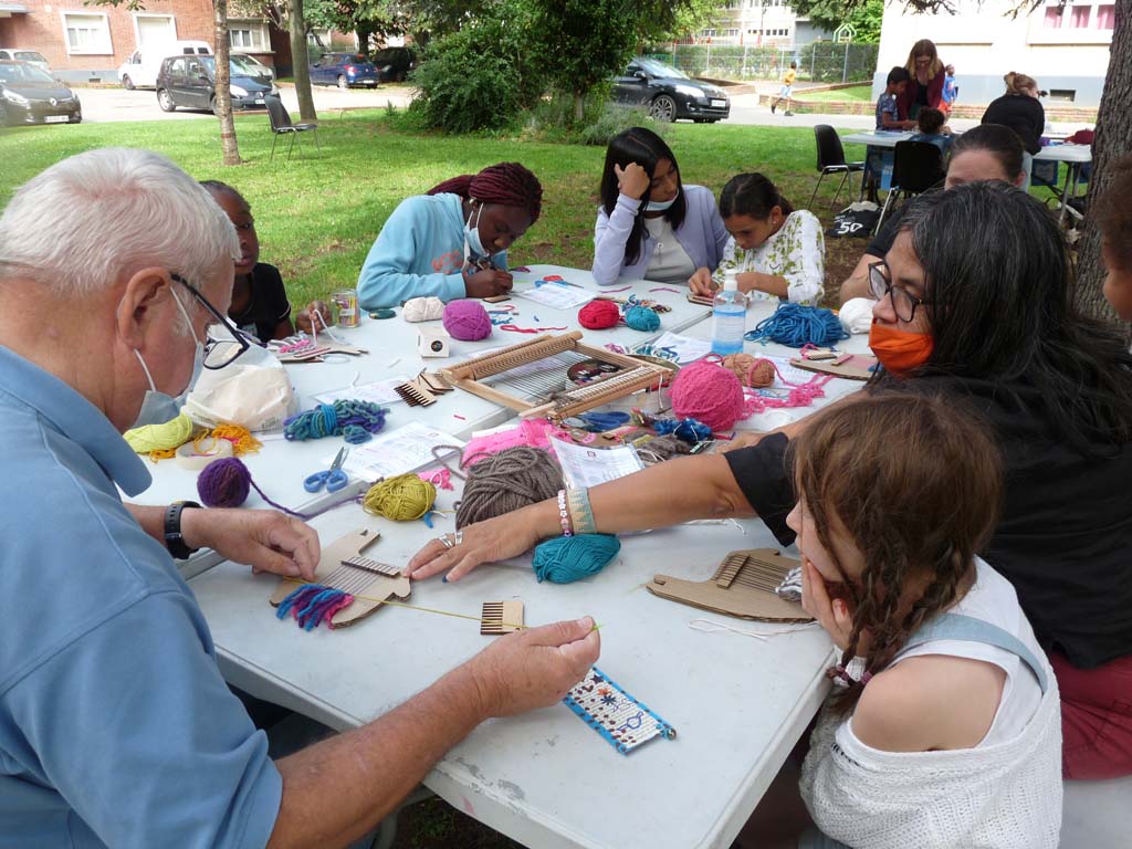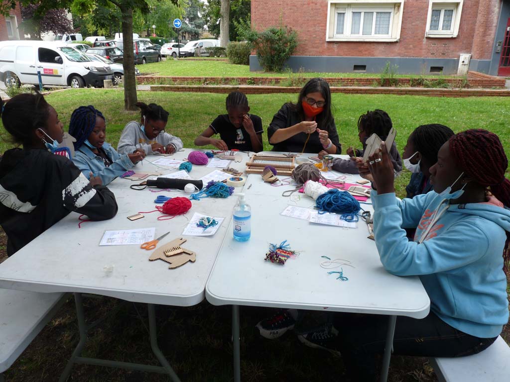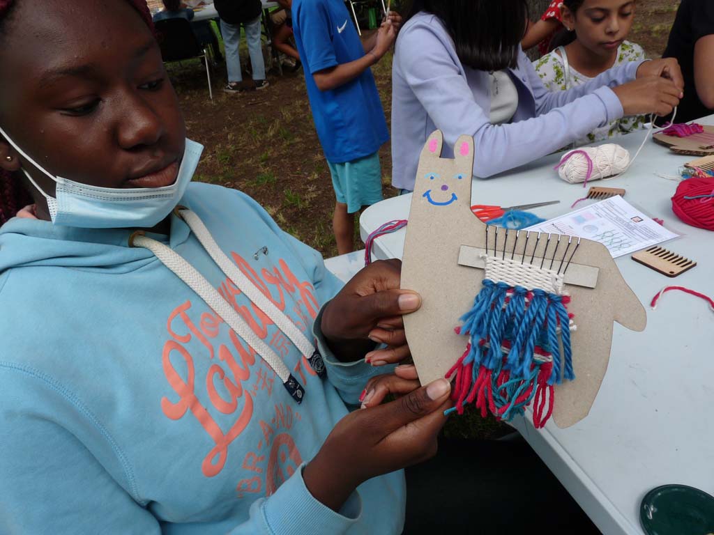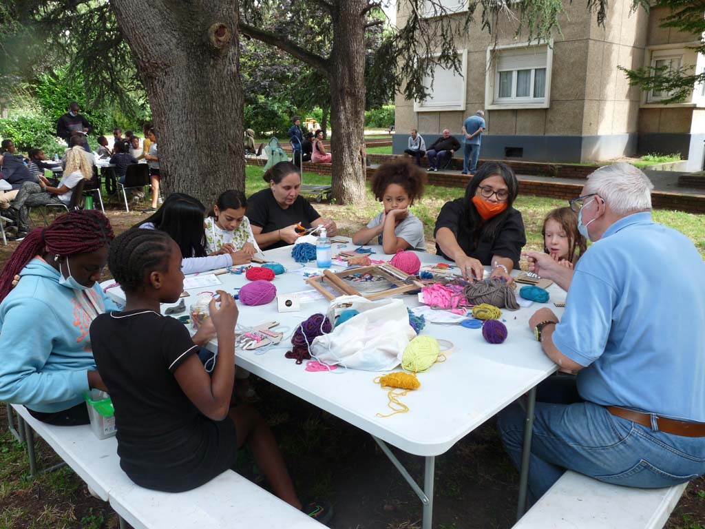 Le mercredi 4 août, Valérie Truong est venu nous montrer l’art du tissage pratiqué par un groupe de femmes d’Aubervilliers lors de nos ateliers de transmission dans Jardin d’échanges 2021. Les enfants étaient ravis de découvrir cette technique millénaire pratiquée dans les quatre coins du monde.