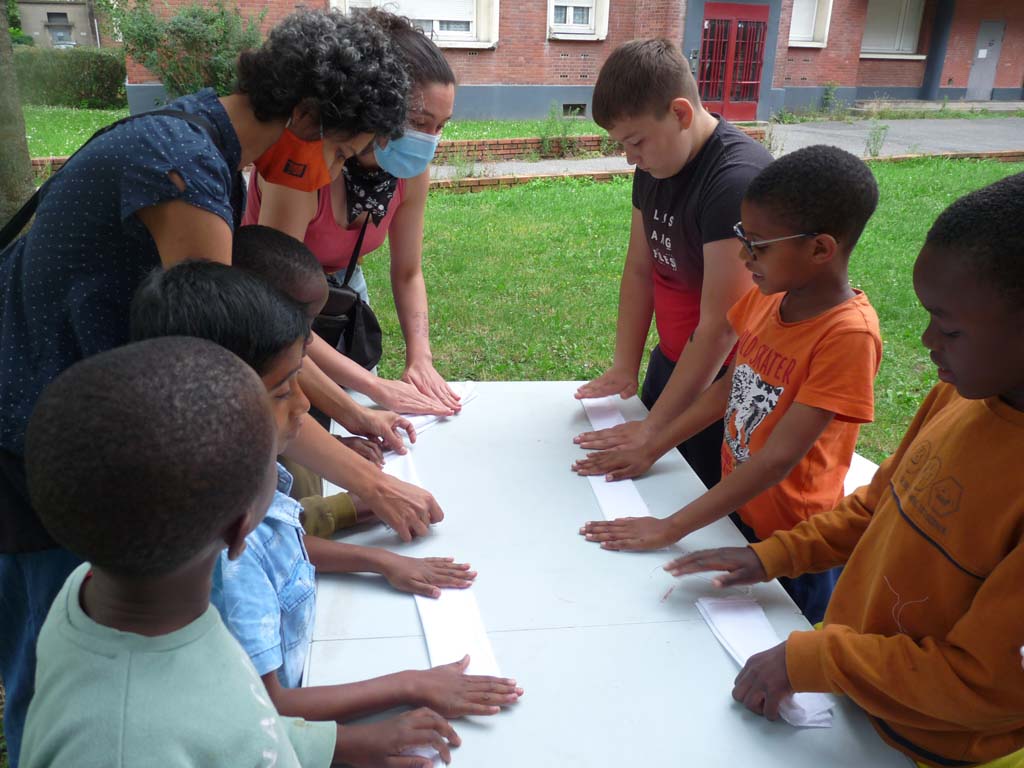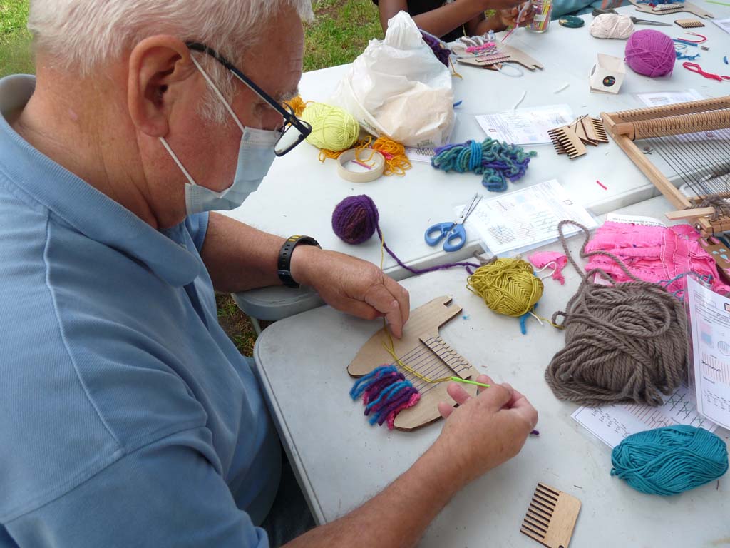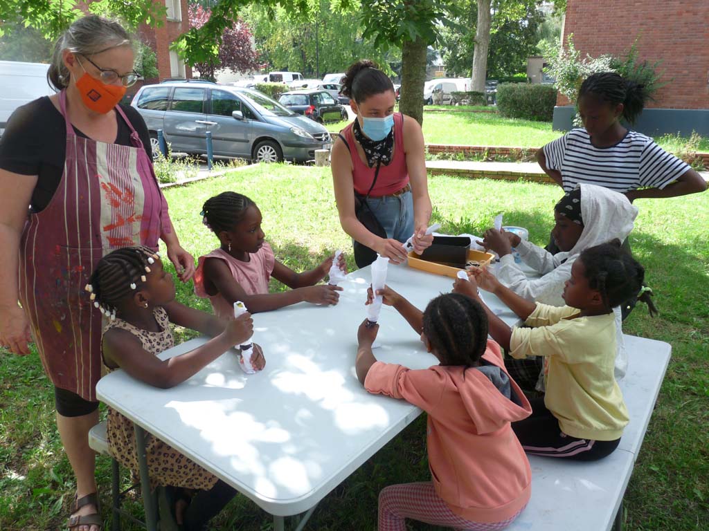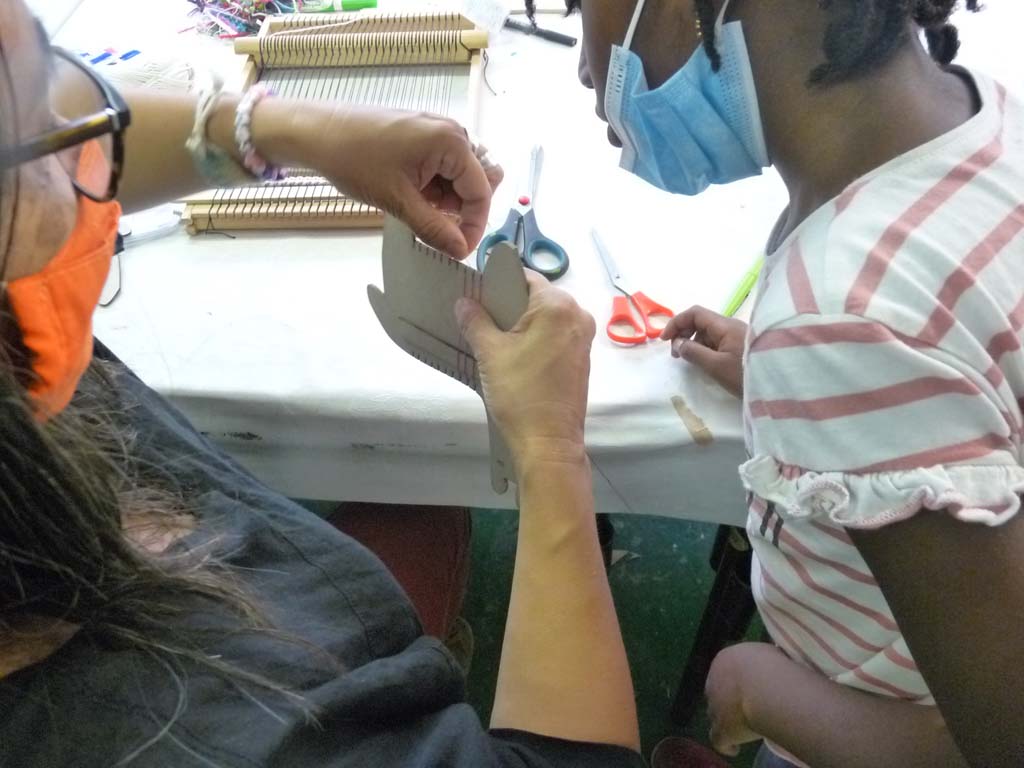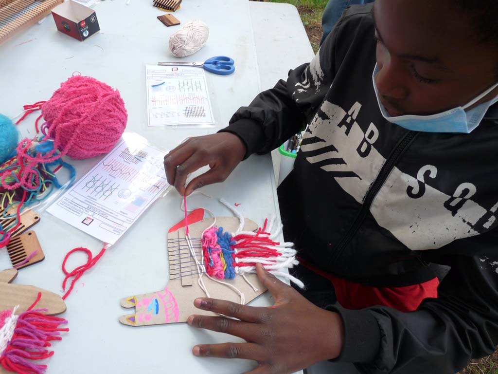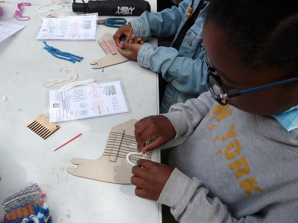 Le mercredi 4 août, Valérie Truong est venu nous montrer l’art du tissage pratiqué par un groupe de femmes d’Aubervilliers lors de nos ateliers de transmission dans Jardin d’échanges 2021. Les enfants étaient ravis de découvrir cette technique millénaire pratiquée dans les quatre coins du monde.