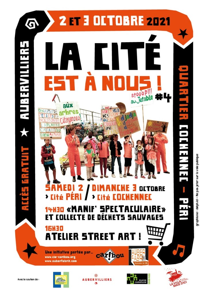 « La cité est à nous » est un événement co-organisé par Auberfabrik et la Cie Caribou qui a été créé en 2018, afin de mobiliser et de sensibiliser les habitants sur la question des déchets présents dans la cité : « la responsabilité de chacun », « comment chacun peut contribuer à la propreté », « le tri sélectif », « le consumérisme», « stop aux dépôt sauvages », sont quelques axes d’action envisagés.