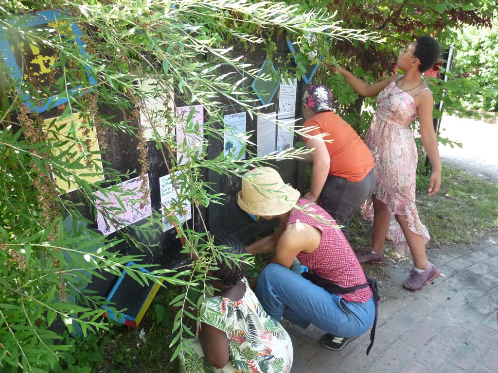 Le projet Jardin d’échanges cette année a touché des centaines de personnes de différents âges, sexes, nationalités, grâce à la multiplicité d’activités proposées à différents publics. Des ateliers de jardinage écologiques, pour un public adulte, le dimanche matin, des ateliers d’arts plastiques, des sorties et des permanences « mercredi au jardin » les mercredis pour les plus jeunes, et un nouveau volet, un projet de transmission et lien social autour des techniques de tissage avec un groupe de femmes albertivillariennes. Le projet s’est consolidé comme un vecteur de mixité sociale dans les quartiers Monfort-Cochennec-Vallès, et comme un moment privilégié pour faire des nouvelles rencontres et tisser des liens au sein des quartiers nord d’Aubervilliers. C’est ce que nous ont témoigné les participantes des ateliers, lesquelles considèrent les séances de tissages à la fois comme des moments de détente, d’apprentissage et de partage.