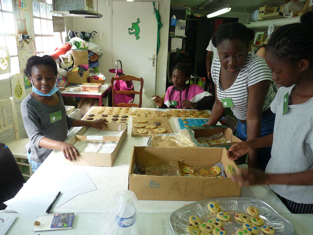 Nous avons également participé à plusieurs événements : au Repas de Quartier Montfort avec un atelier patisserie-vente de cookies avec les enfants de Cochennec ; à la Fête de Quartier à Vallès avec un atelier de semis et fabrication de pots en origami, à La Buvette du Marché du Montfort avec un atelier d’initiation au tissage, et à la Foire de Savoirs Faire de Saint-Denis avec une expo-vente de productions des tisseuses albertivilariennes.