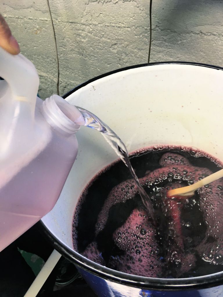 La palette de couleurs est magnifique! Afin de ne rien perdre des précieuses couleurs, je transforme les bains utilisés en pigments. Ils nous serviront pour d’autres projets.