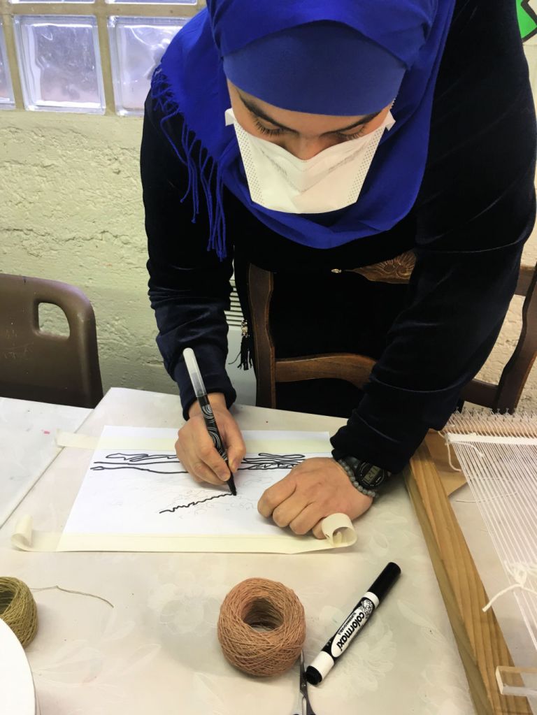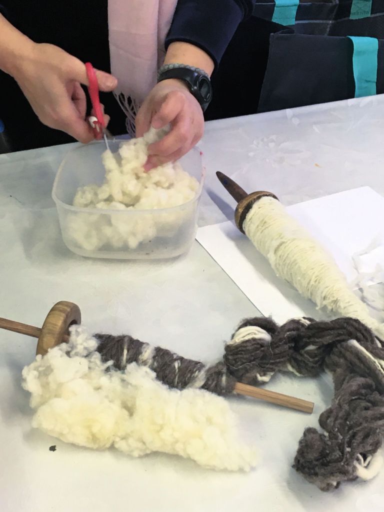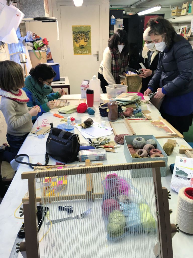 Les ateliers de tissage continuent les jeudis matin. Chacune avance petit à petit sur son projet, ces moments sont également l’occasion de nous retrouver et de discuter des projets : la Fête de la laine au parc Georges Valbon le 24 avril et le Festival du Lin en juillet. Fatima, la maman de Hayate nous a montré comment on cardait la laine à Figuig au Maroc, et comment on la filait. Le filage au fuseau est différent de celui que nous connaissons, on file assis, en roulant le fuseau sur le mollet. C’est Judith qui a testé avec succès cette nouvelle technique.