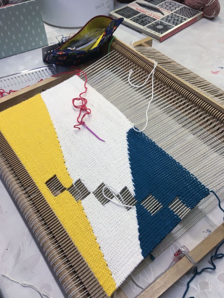 Depuis le 10 mars, les ateliers ont lieu à la salle Casanova, toujours le jeudi matin. Nous avons enfin une salle lumineuse pour tisser!