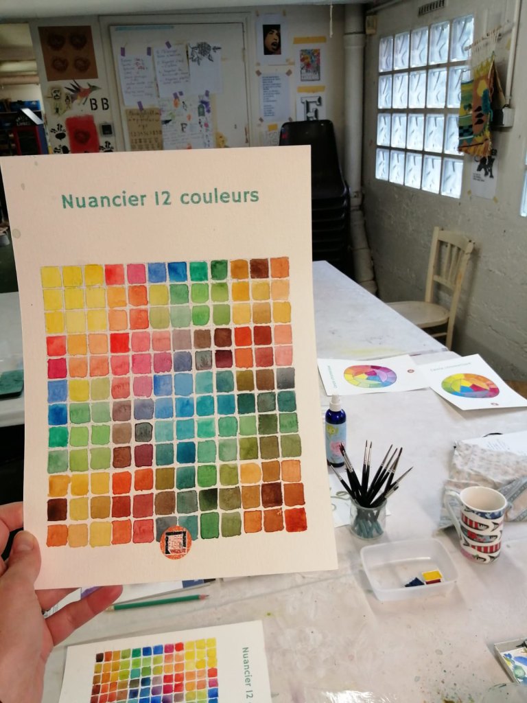 Nous articulons ces propositions créatives avec des moment de fabrication des outils et des matériaux que nous utiliserons ensuite dans les ateliers, comme fabriquer sa propre aquarelle et composer ainsi sa palette personnelle