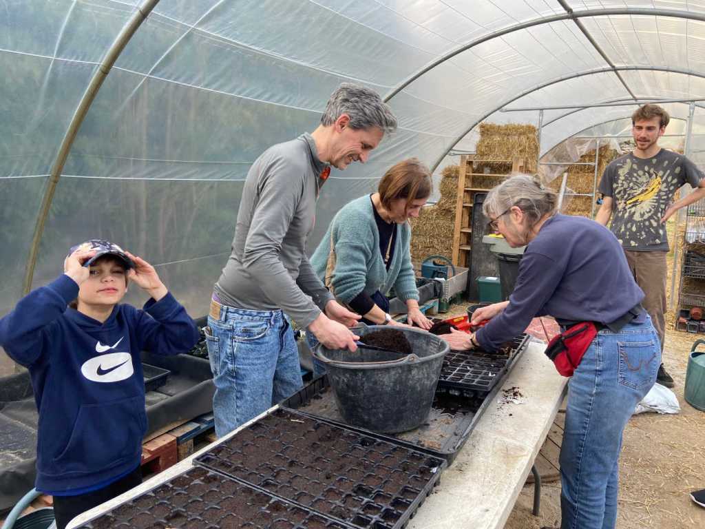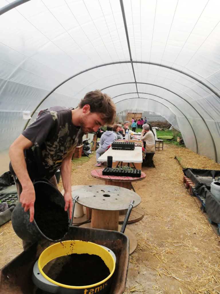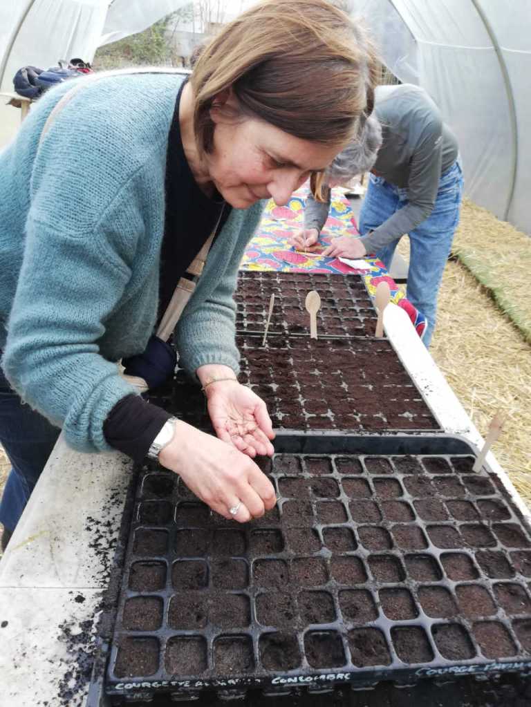 Mercredi 29 mars, on a fait les premiers semis de plantes tinctoriales au Jardin Espèrance. 3 plateaux de coreopsis, cosmos, scabieuses…, qui seront chouchoutés par les usagers du jardin, en attendant d’être repiqués dans un coin .