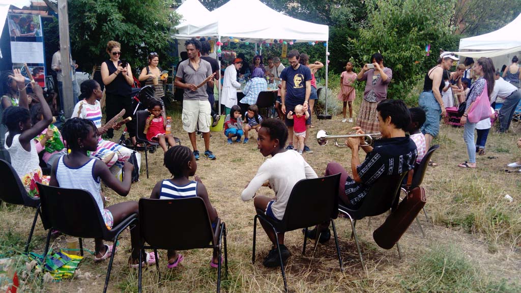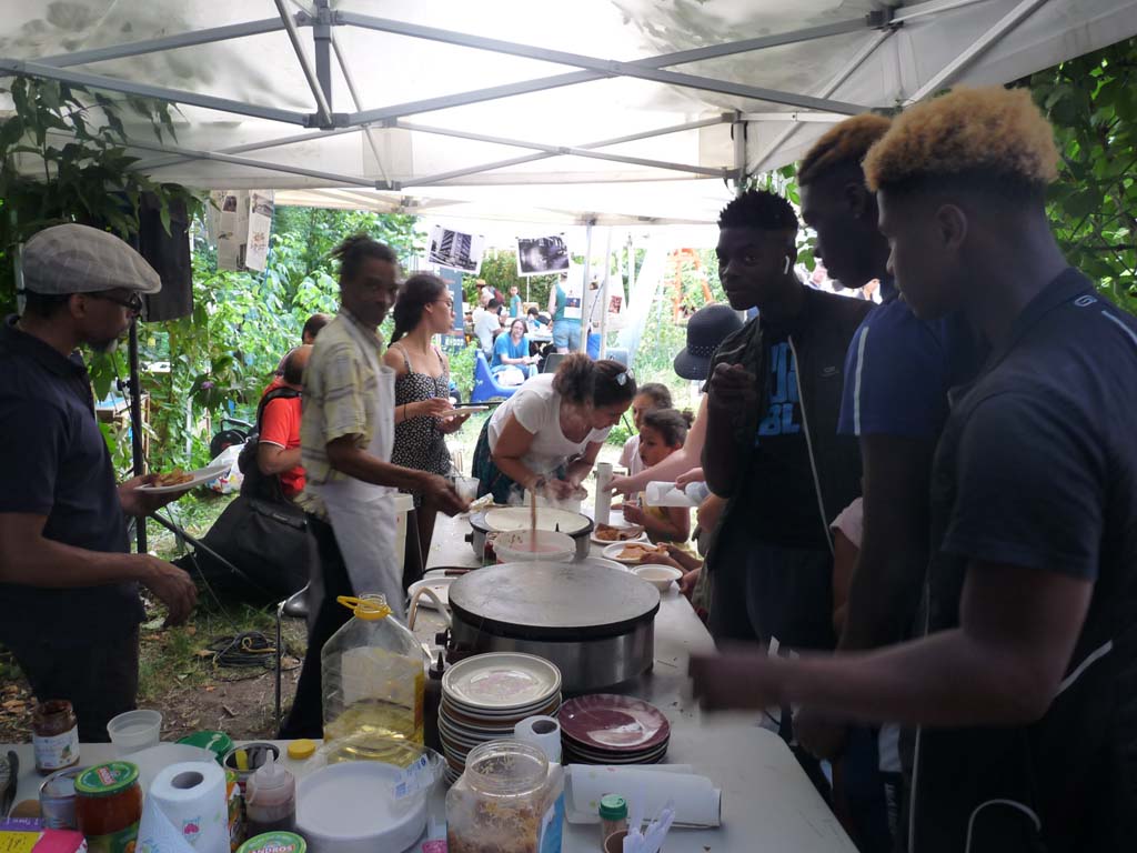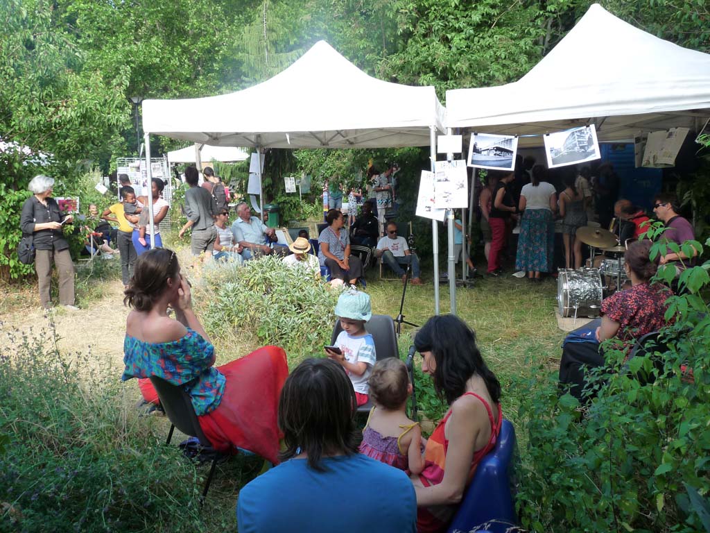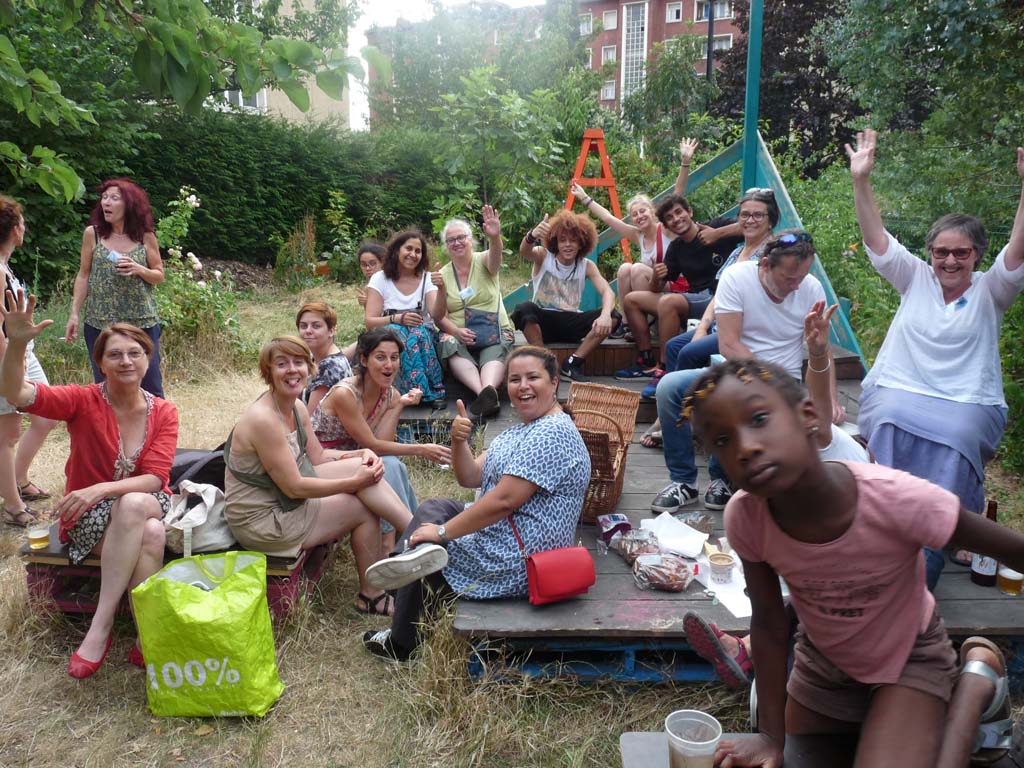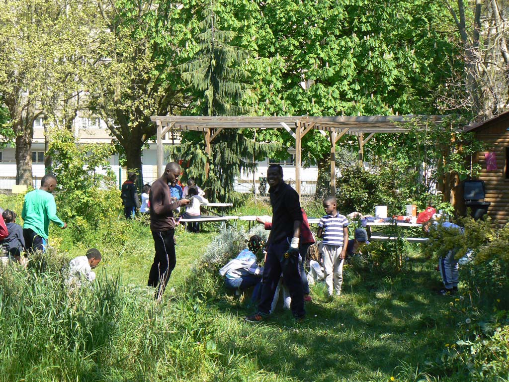 Le jardin était également identifié comme un espace d’échange, d’apprentissage, d’expérimentation en jardinage écologique ainsi qu’un lieu de pratiques artistiques, par un public adulte. Les ateliers de jardinage à destination des adultes ont touché un public très mixte : en termes de sexe et lieu d’habitation. Les participants sont venus de divers quartiers d’Aubervilliers et aussi des villes voisines. Les dimanches matin étaient l’occasion de se mettre au vert, la main dans la terre, mais aussi de rencontrer des nouvelles personnes venues des différents milieux sociaux.