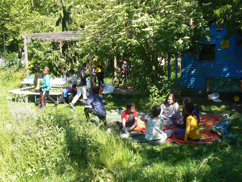 Pour les enfants et les jeunes, le jardin était un espace de divertissement et d’apprentissage à travers le jardinage, les arts plastiques et la convivialité. Le rendez-vous hebdomadaire et les sorties ont été pour certains un des rares moments d’activité culturelle dans leur quotidien. Ces permanences sont devenues un point de rencontre pour un groupe qui est venu régulièrement aider à l’entretien du jardin, participer aux ateliers d’arts plastiques et aux sorties.