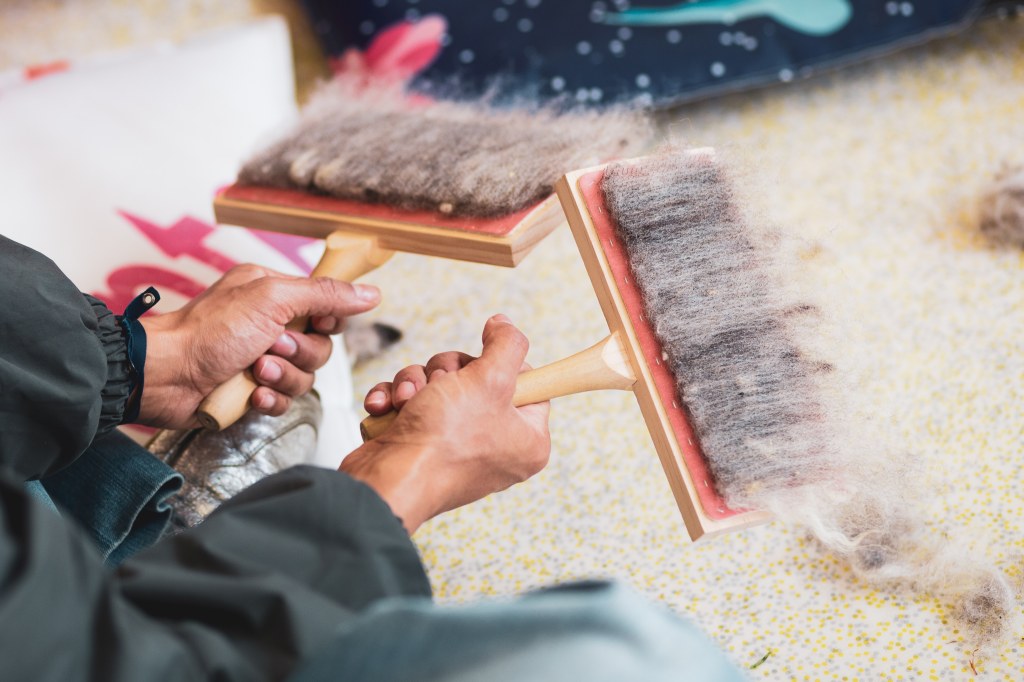 Le dimanche 7 avril, parallèlement à la tonte des moutons de l’association Clinamen, le public a pu découvrir à son tour toutes ces étapes.