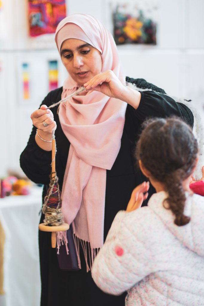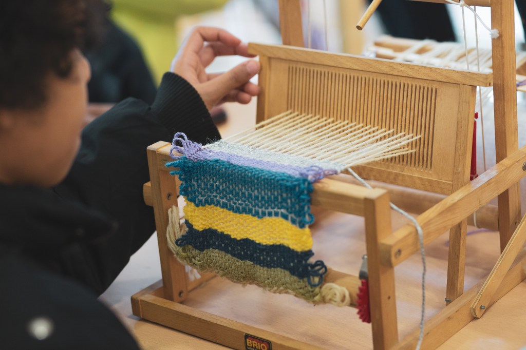 Les élèves ont pu visiter notre exposition « De la toison au textile » et s’initier au cardage, filage et tissage, découvrant ainsi les étapes entre la tonte du mouton et la création d’un textile.