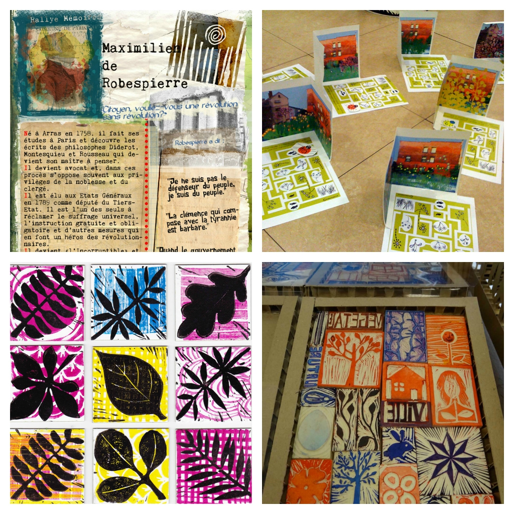 Les ateliers de création de jeu proposent lire le patrimoine en donnant des repères plastiques et historiques et en établissant des liens entre les différentes formes d’arts. Nous utilisons divers médiums, dont la linogravure et la création numérique.