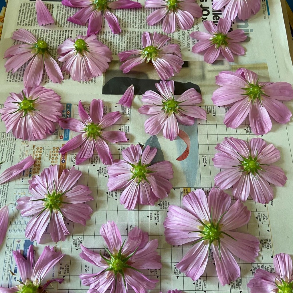 Les deux séances de jardinage, ont permis de reconnaître des plantes tinctoriales et de les mettre sous presse pour confectionner un herbier.